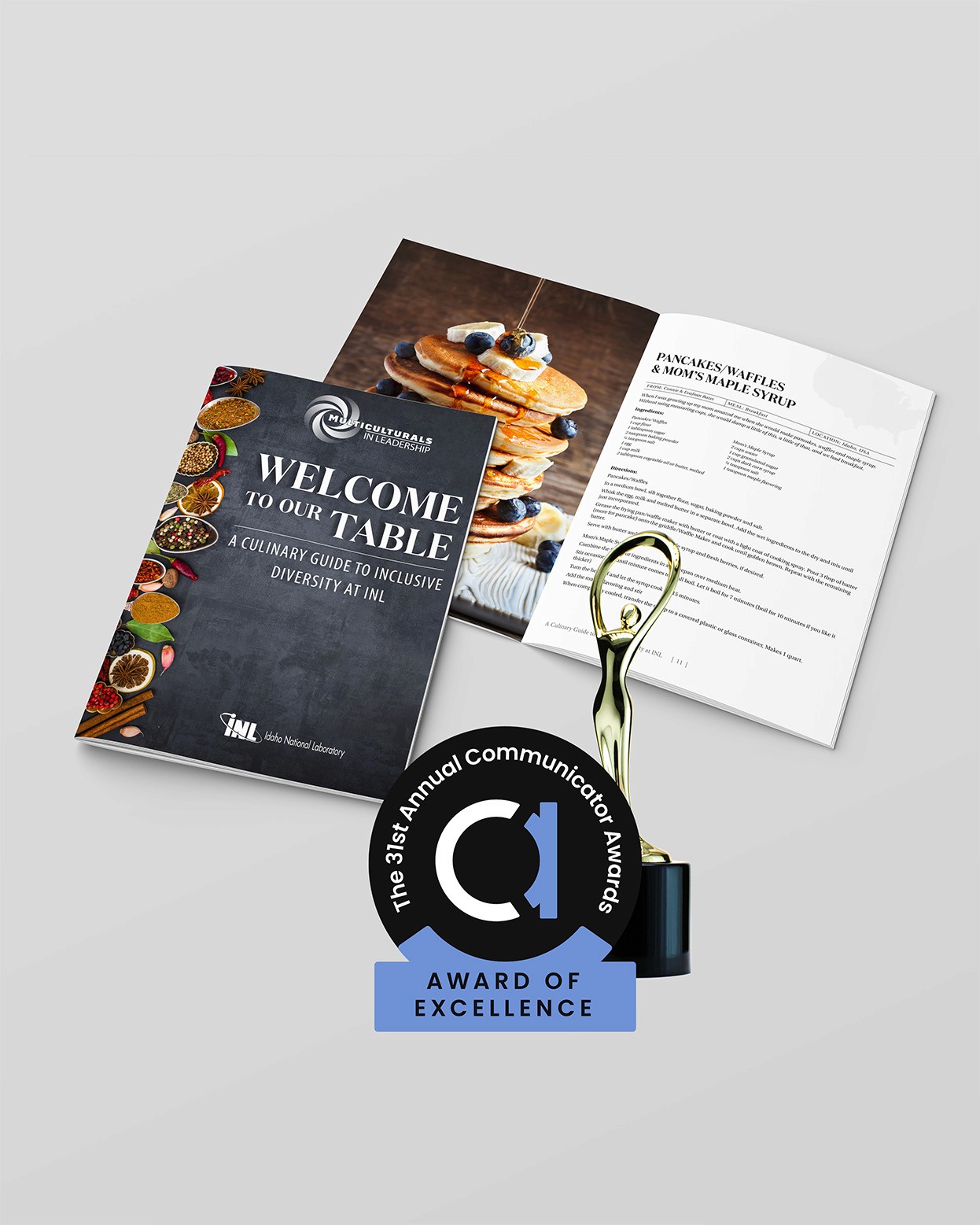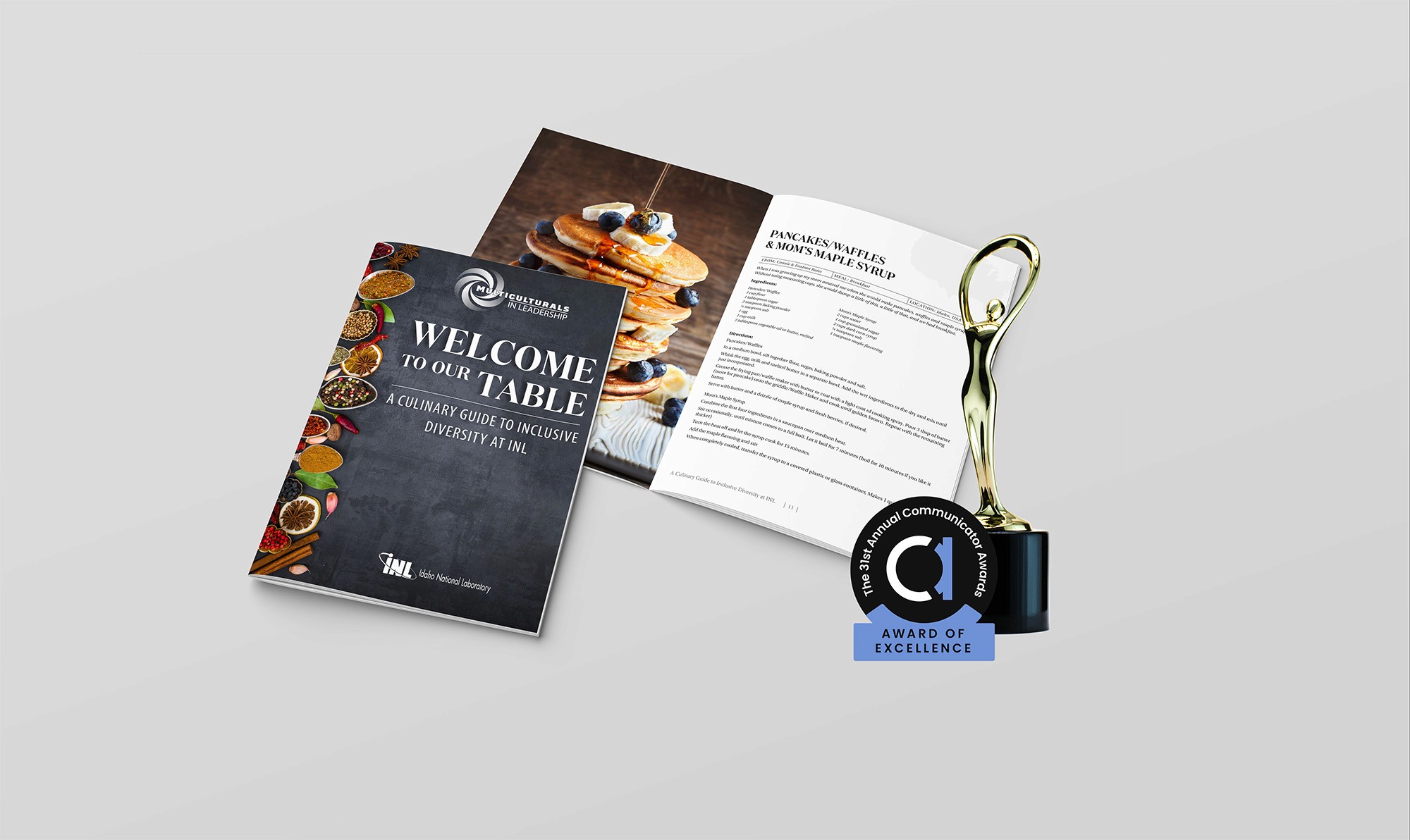 INL’s Multiculturals in Leadership Council and I teamed up to create a one-of-a-kind recruiting piece: a recipe book featuring dishes from INL’s diverse workforce. The project highlighted the people behind the lab and later earned the 2022 Award of Excellence in Design & Print for DEI promotional collateral.