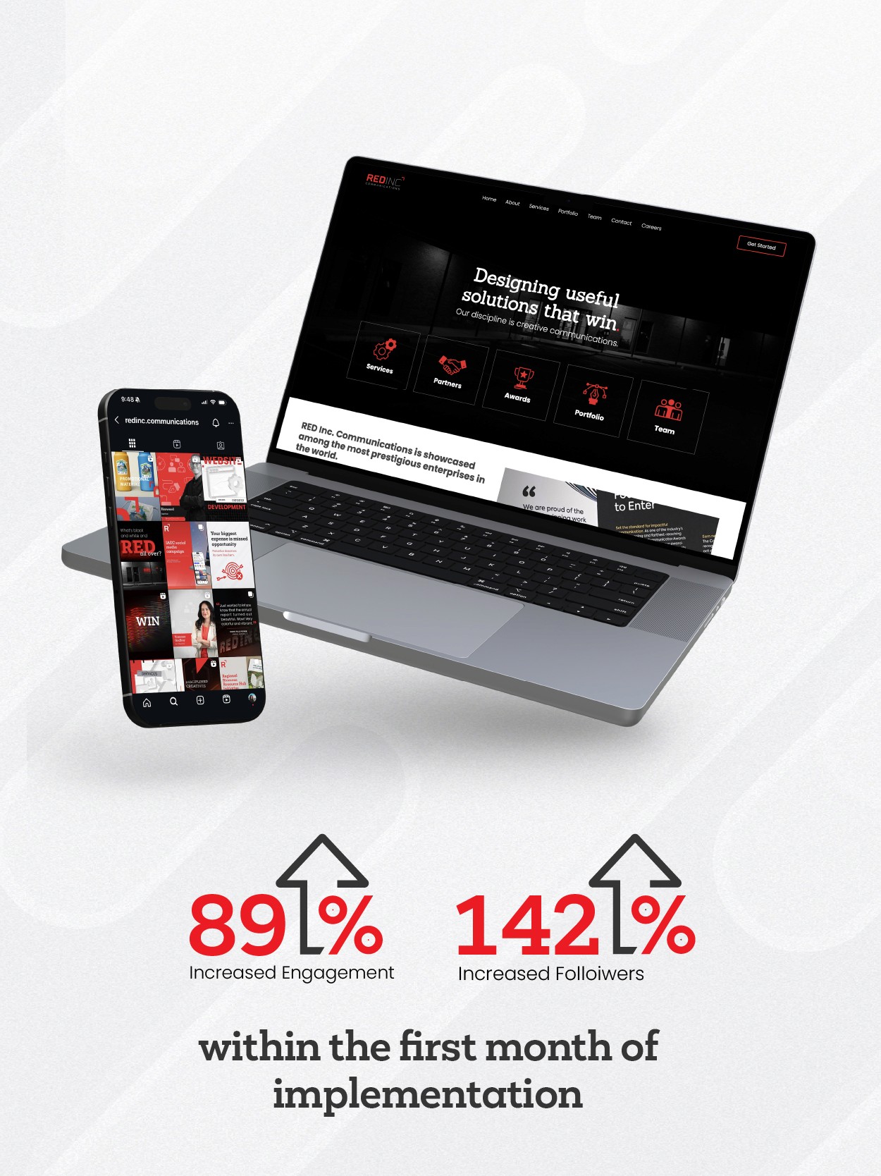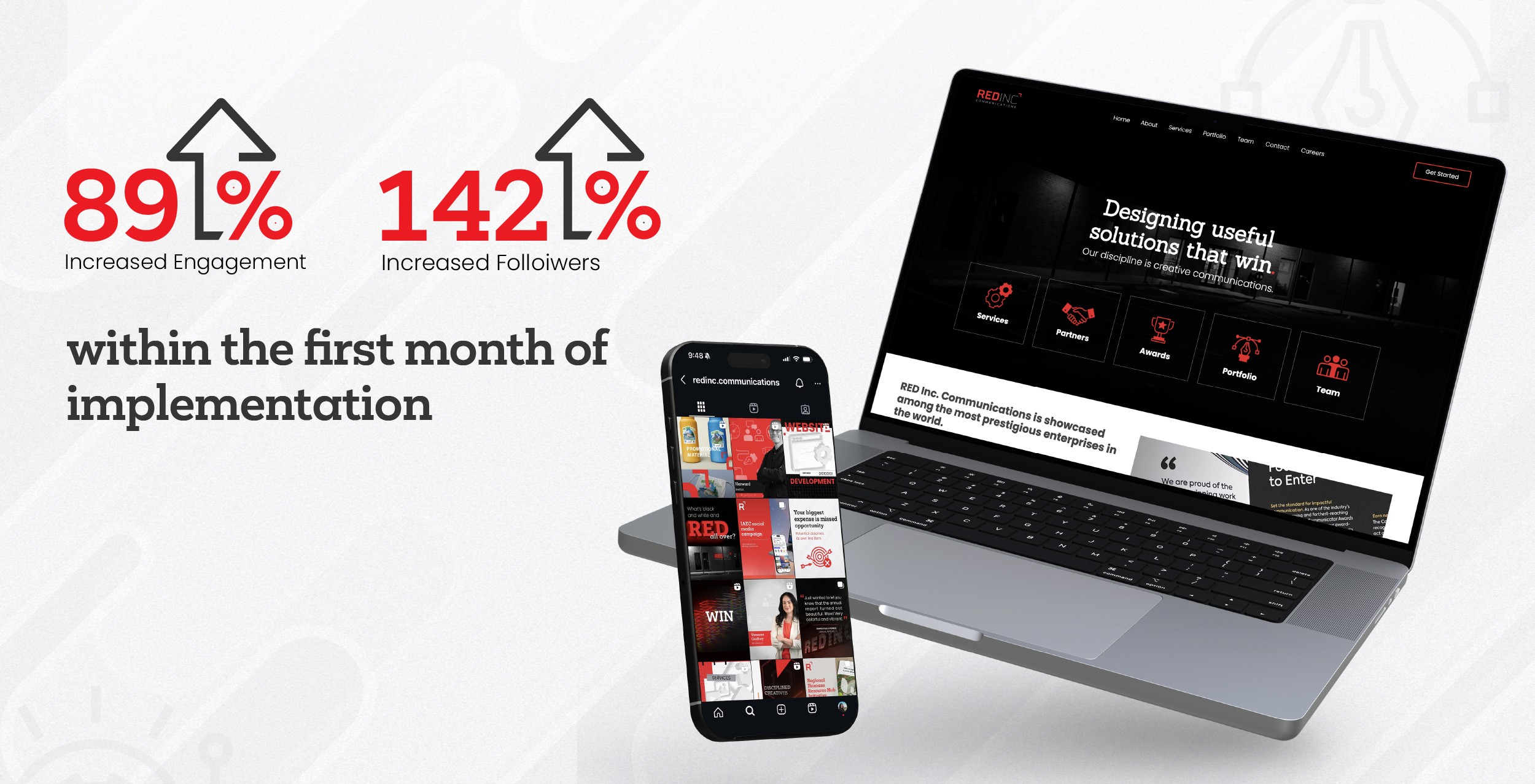The final rollout delivered a cohesive, modern brand system for RED Inc., unifying logo, web, print, and social into a consistent experience that’s easy to recognize and simple to navigate. With a clean, functional website and an ongoing social media strategy supported by performance insights, the updated identity strengthens credibility, improves engagement, and supports sustained business growth.