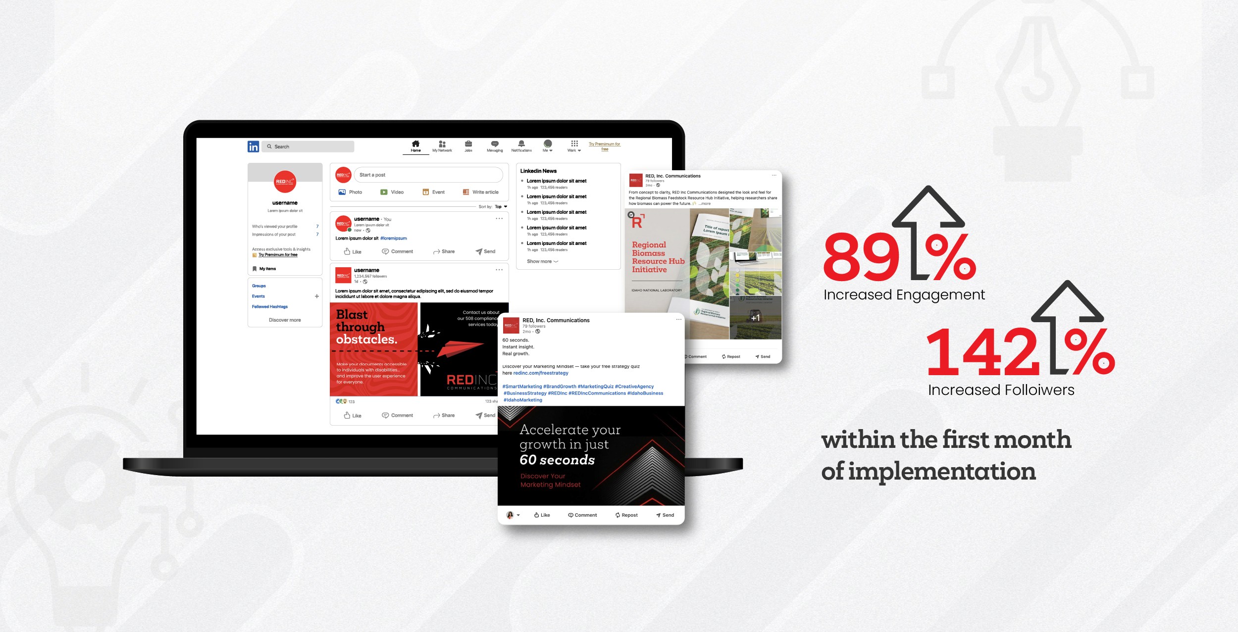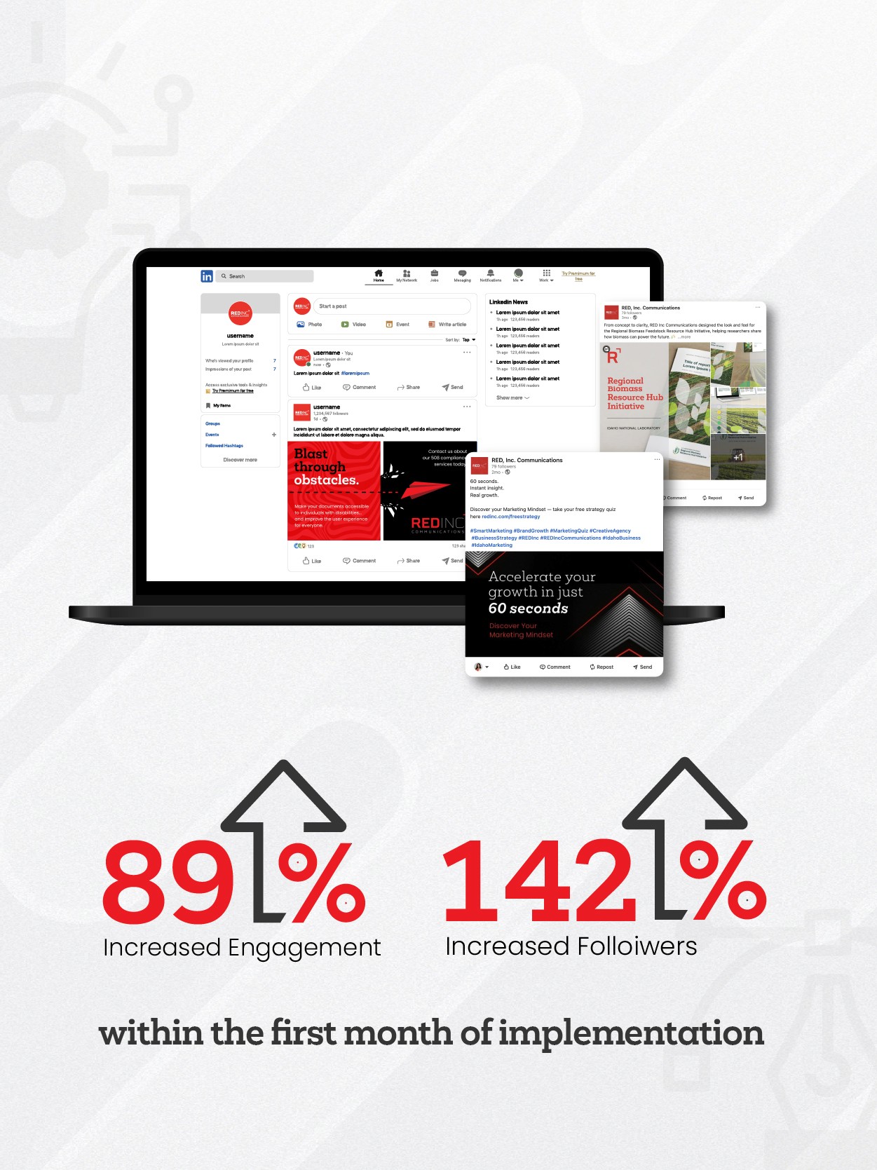 Elevate the social strategy to strengthen RED Inc.’s digital presence.