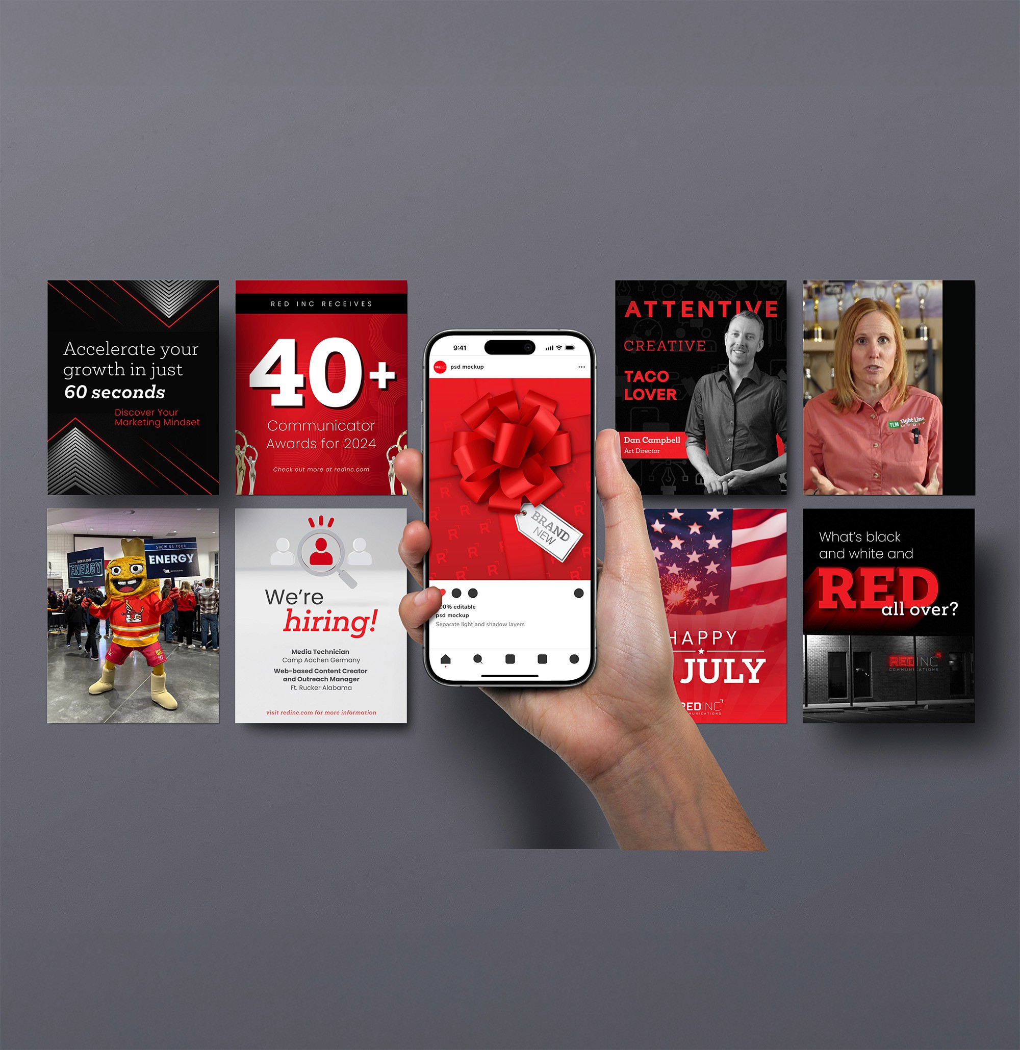 RED Inc.’s social media became the clearest expression of their refreshed brand. I used each post to apply the new visual tone and voice with consistency across graphics, photography, and video, turning their channels into a polished extension of the brand guide.