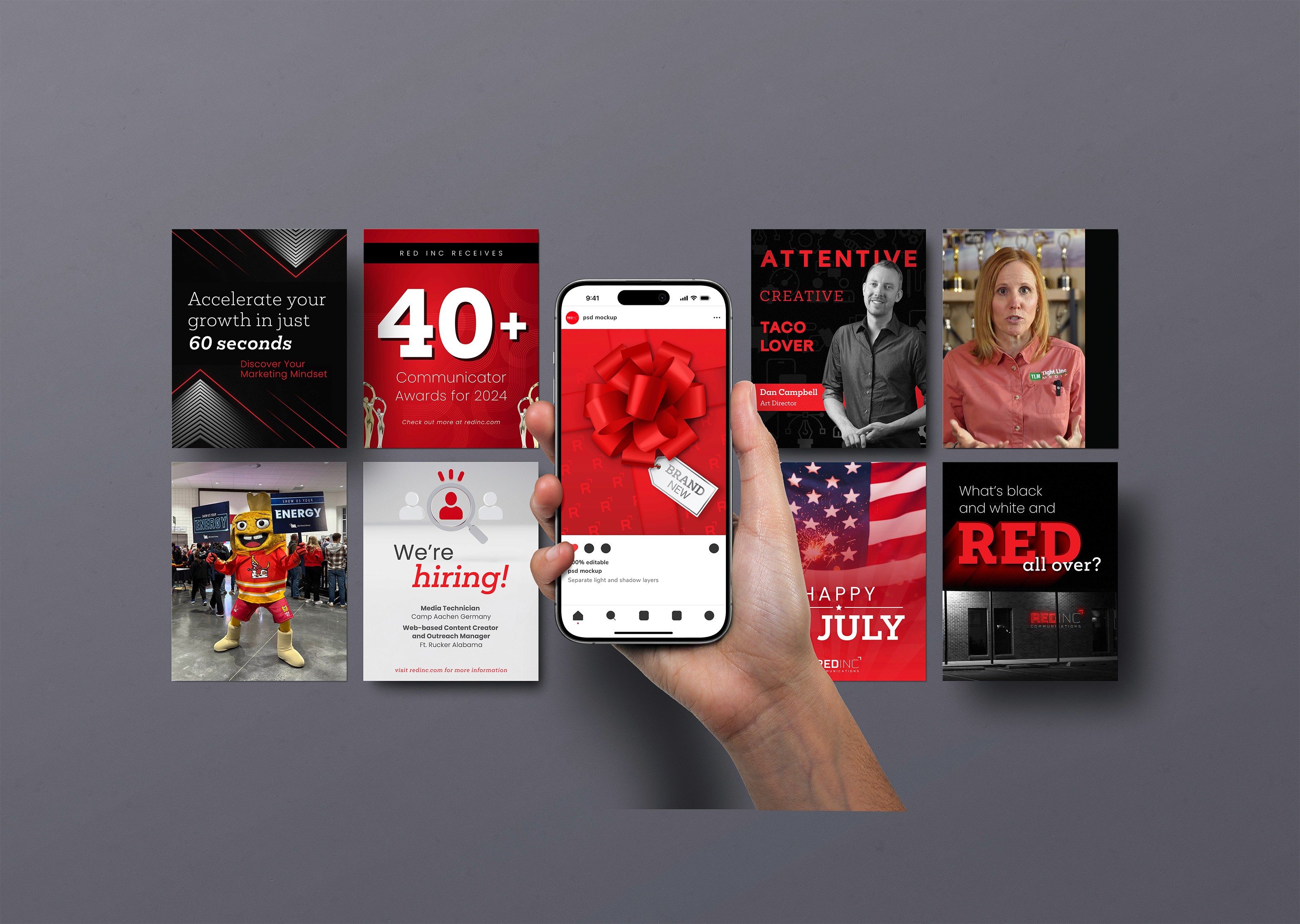 Create a cohesive social presence for RED Inc. that applies the refreshed brand, speaks directly to target audiences, balances playful and professional content, and supports measurable growth.